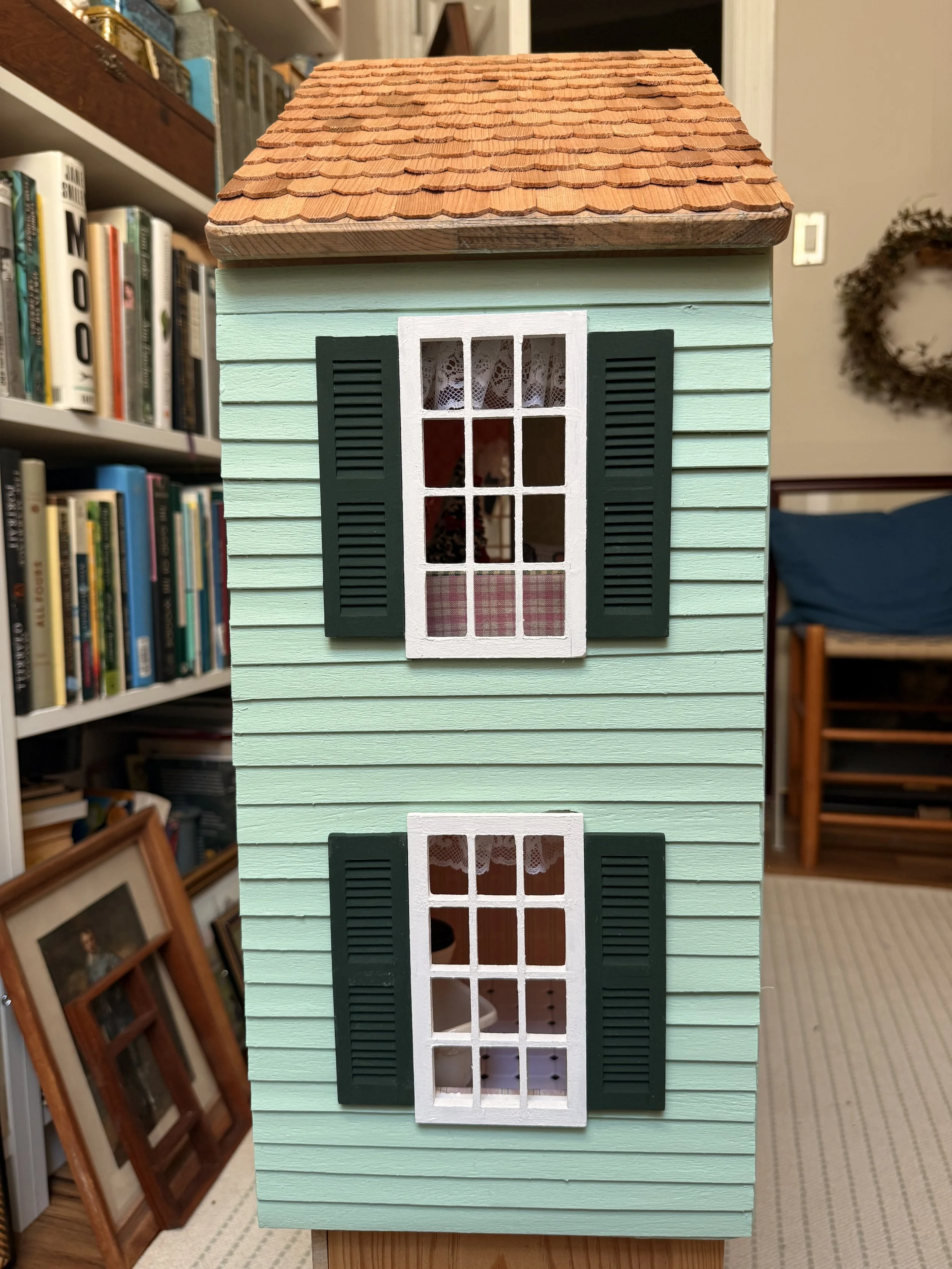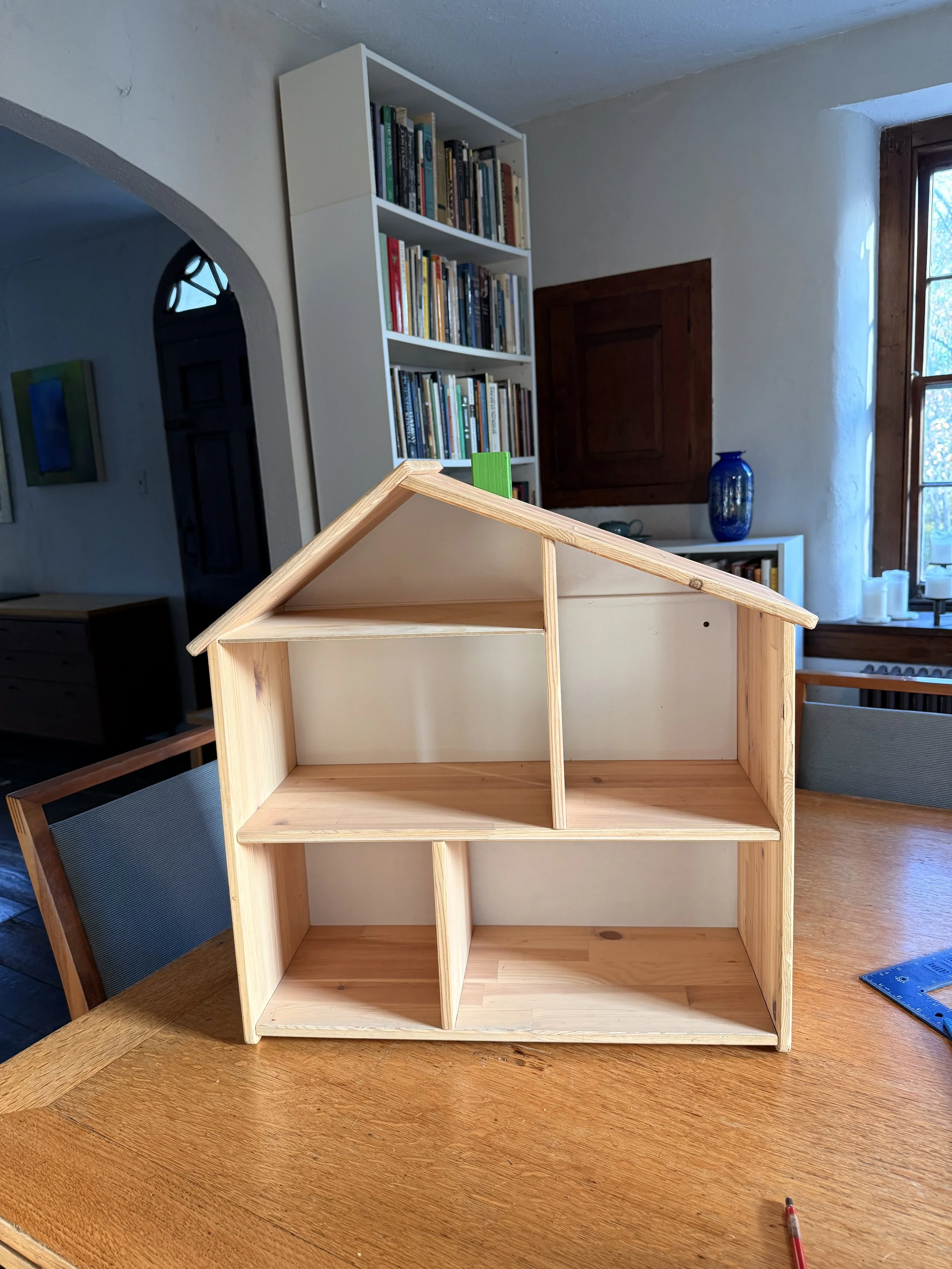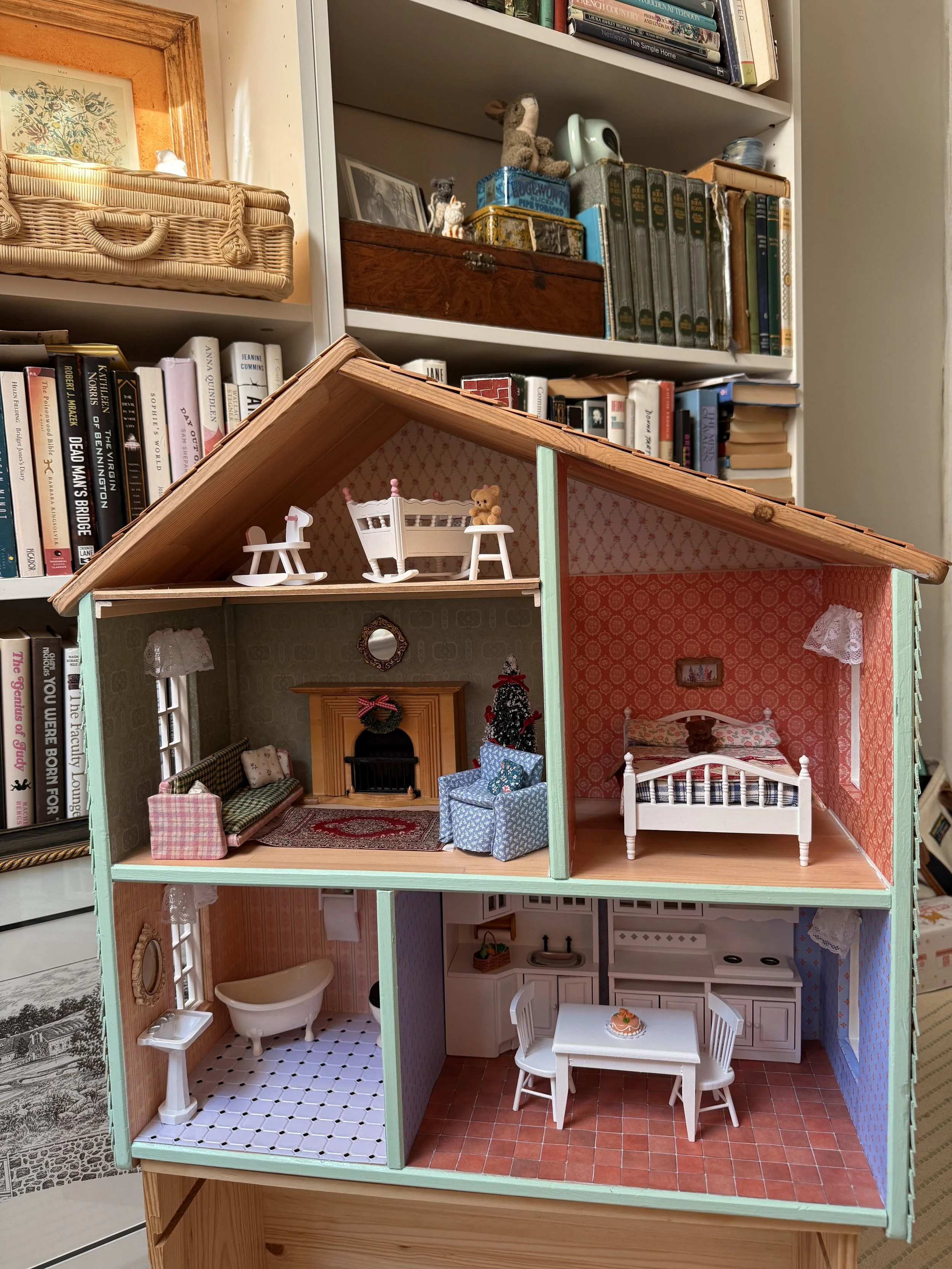 I purchased this Ikea dollhouse at the Golden Nugget Flea Market in October 2025. They asked for fifteen dollars, but I only had a ten dollar bill in my wallet. Luckily, the man at this booth accepted that and we made a deal. It was covered in crayon and pencil marks and other unidentifiable scuffs. Safe to assume it had been well loved. I took a magic eraser and some warm water to which cleaned it up nicely.